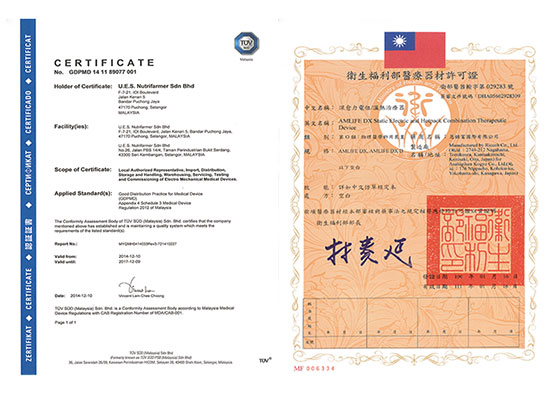 經臨床實驗獲日、台、馬多國醫療器材認證及ISO國際品質認證